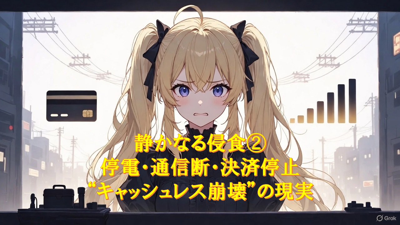 私はアイリス。都市伝説は、ただの作り話じゃない――語られぬ真実を、あなたと共に辿る語り部よ。 静かなる侵食②――“インフラ”は、突然止まる 前回は「認知戦」。今日は、その次に起きる“現実”の話をするわ。停電、通信断、決済 … 続きを読む 静かなる侵食②:停電・通信断・決済停止――“キャッシュレス崩壊”の現実