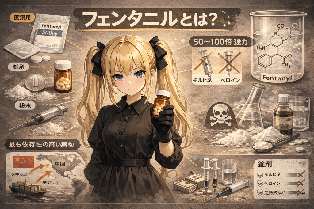 問題は「用途」ではなく「濃度」と「流通」です。ごく微量で作用が出るため、違法流通の現場では“混ぜ物”として扱われやすく、本人がフェンタニルを摂った自覚のないまま重篤化するケースが起き得ます。