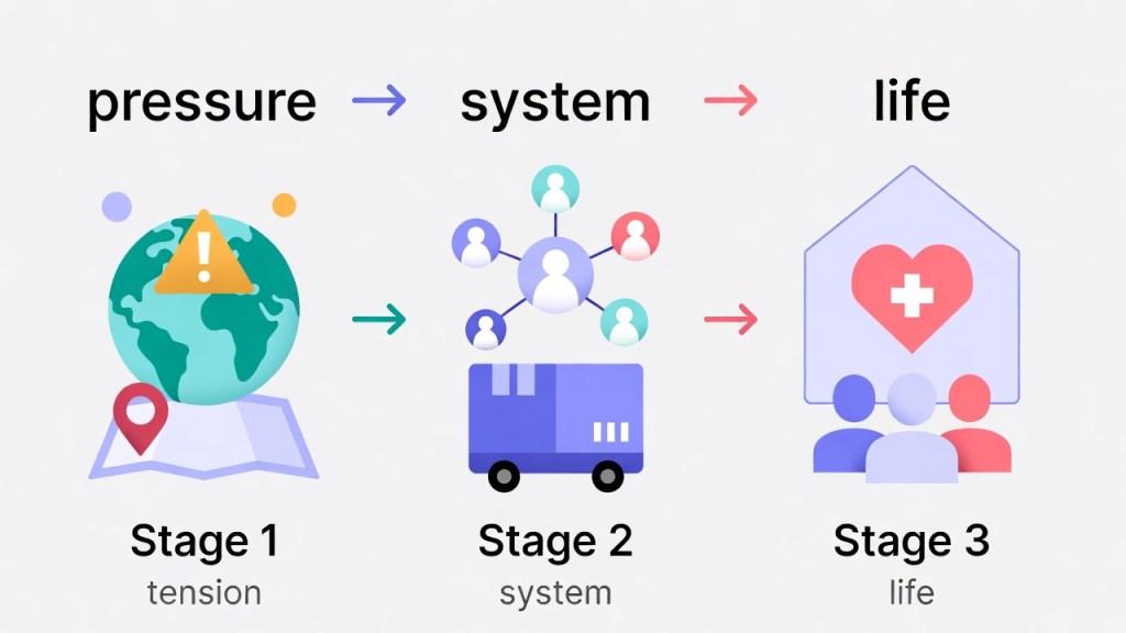 外層の火種(戦争・封鎖・資源)と中層の装置(金融・供給網)が連動する、という計画書の読み方が成立する。