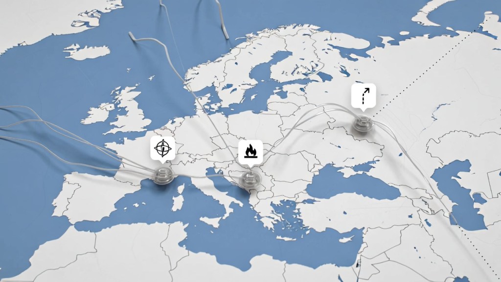 - External: pressure beyond borders (conflict fields, drift, next moves)