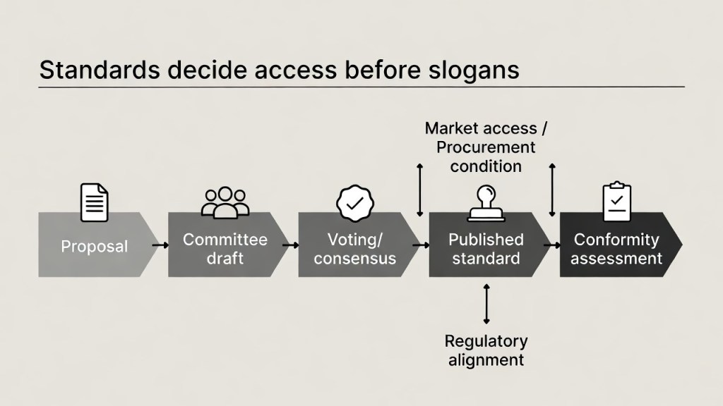 How international standards are built; why standardization can become a political/industrial junction.