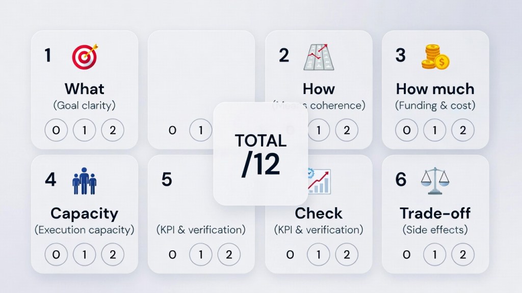 - 5) Verification (KPI/Check): 0 / 1 / 2